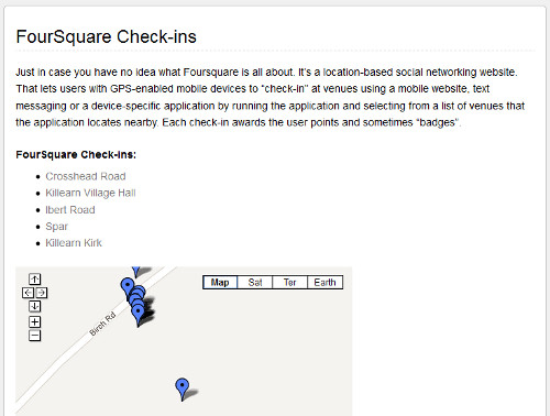 I have just given the FourSquare Check-ins page on this website a much needed update.